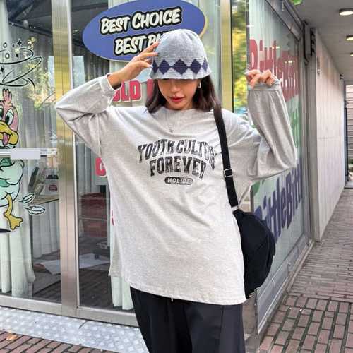 옷자락 / 여자 루즈 박스핏 레터링 라운드넥 롱슬리브 티셔츠