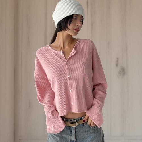 [신상오픈런]여성 크롭 박스핏 라운드넥 롱슬리브 가디건 잔골지 (41315671)