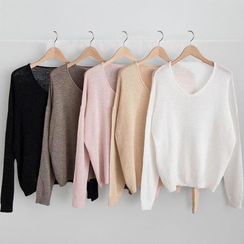[신상오픈런]여성 시스루 브이넥 롱슬리브 박스핏 니트 스웨터 (40953242)