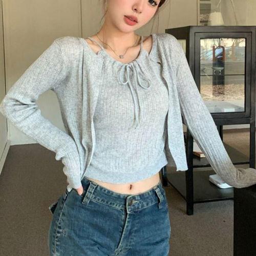 떳다그녀 레누아 가디건 머메이드 치마 니트 셋업 루즈핏 투피스 간절기 브이넥 카디건 롱스커트 세트