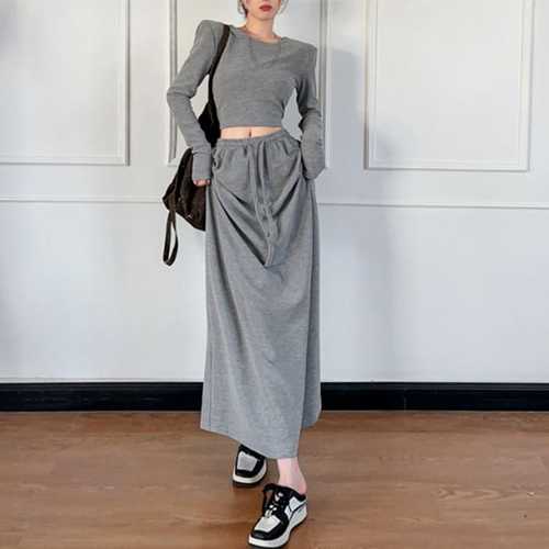 슈팅스타 / 무지 크롭 긴팔티 + 롱 스커트 투피스 세트 599362