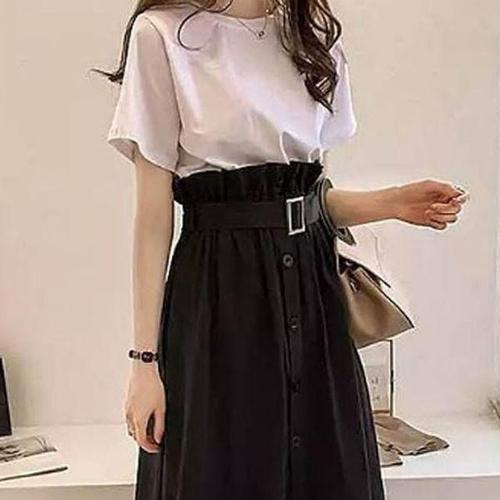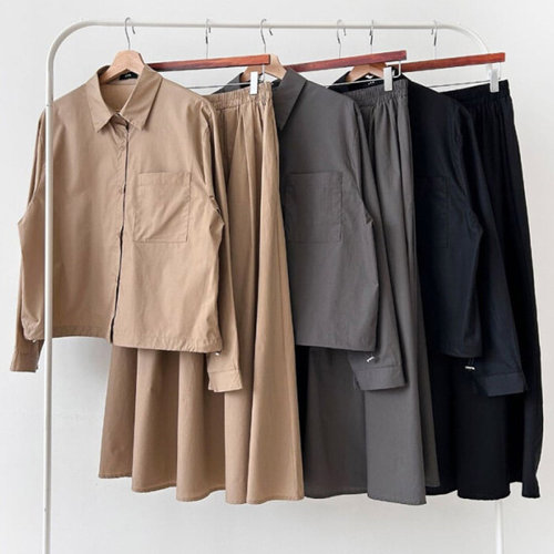 패션] 롱 스커트 반팔 투피스 세트 JSC24062204 롱스커트 미디