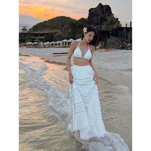 [비바럽]레이스 자수 티어드 롱 스커트 SK20319F 밴딩 캉캉 스커트 여름 프릴 화이트 치마 비키니 수영복..