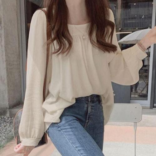 스퀘어넥 블라우스 쉬폰 프릴 봄 가을 여자 긴팔 상의