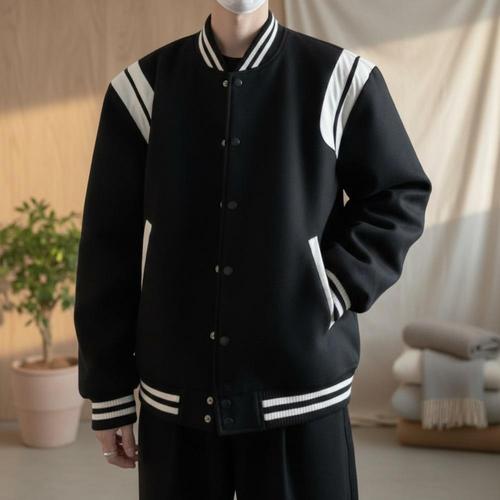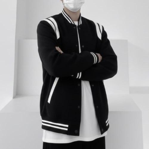 야구 자켓 재킷 점퍼 베이스볼 바시티 스타디움 캐주얼 남자 남성 컬러 블로킹 저지 패션 트렌드 블랙 화이