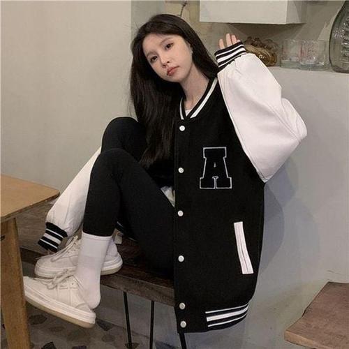[에이치플러스몰]스타일 1컬러 일상용 세련된 기모안감여성용 컬러믹스 스타디움자켓