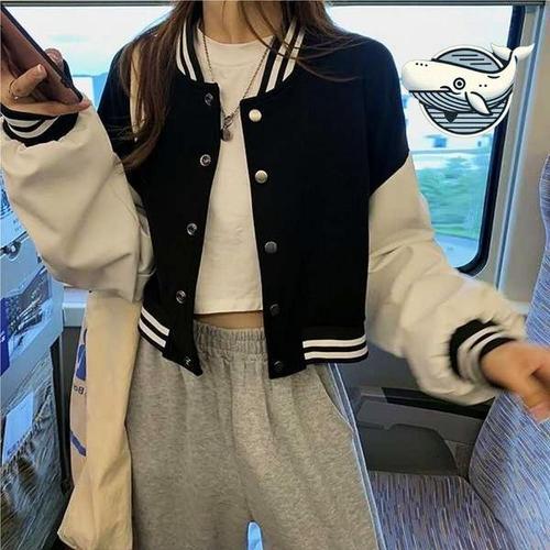 [에이치플러스몰]트렌디 배색 크롭자켓 여성용 캐주얼 스타디움