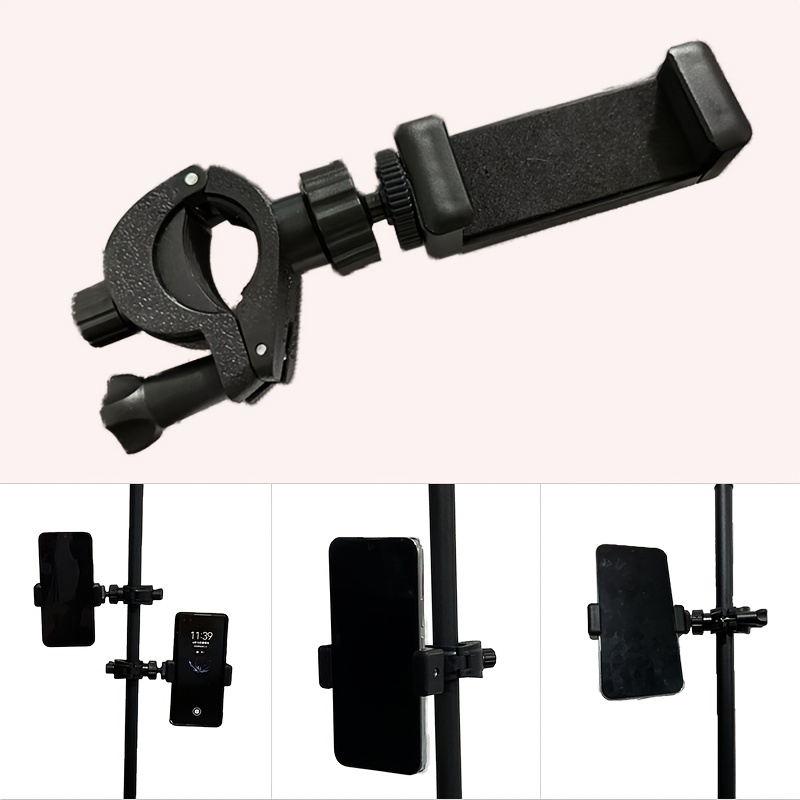 TEMU 라이브 스트리밍 및 비디오 녹화를 위한 360도 회전 휴대폰 홀더. 모든 10-31mm 원형 막대와 호환됩니다. 라이브 방송, 노래, 악보 읽기, 자전거 타면서 내비게이션 등에 사용할 수 있습니다.
