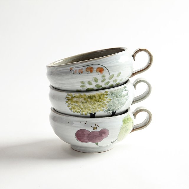 분청 귀얄꽃 쌍화차잔 대추 생강 한방차잔 죽그릇
