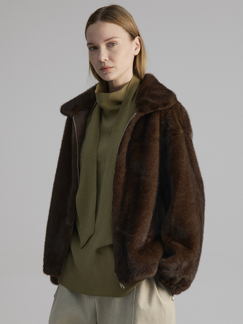 [스테이피플] 카라 퍼 자켓 - 브라