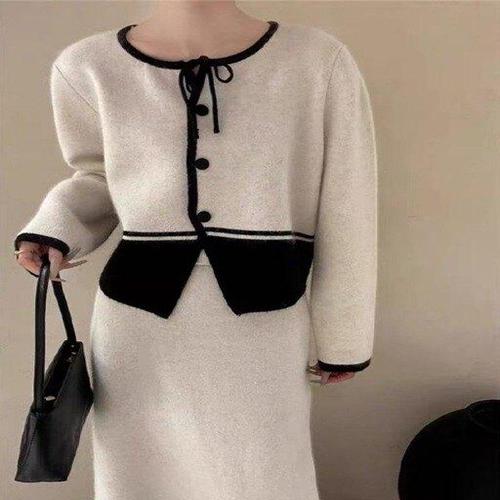 [BZJKFF3I_4B]리본 스커트 투피스 세트 여성 겨울코디