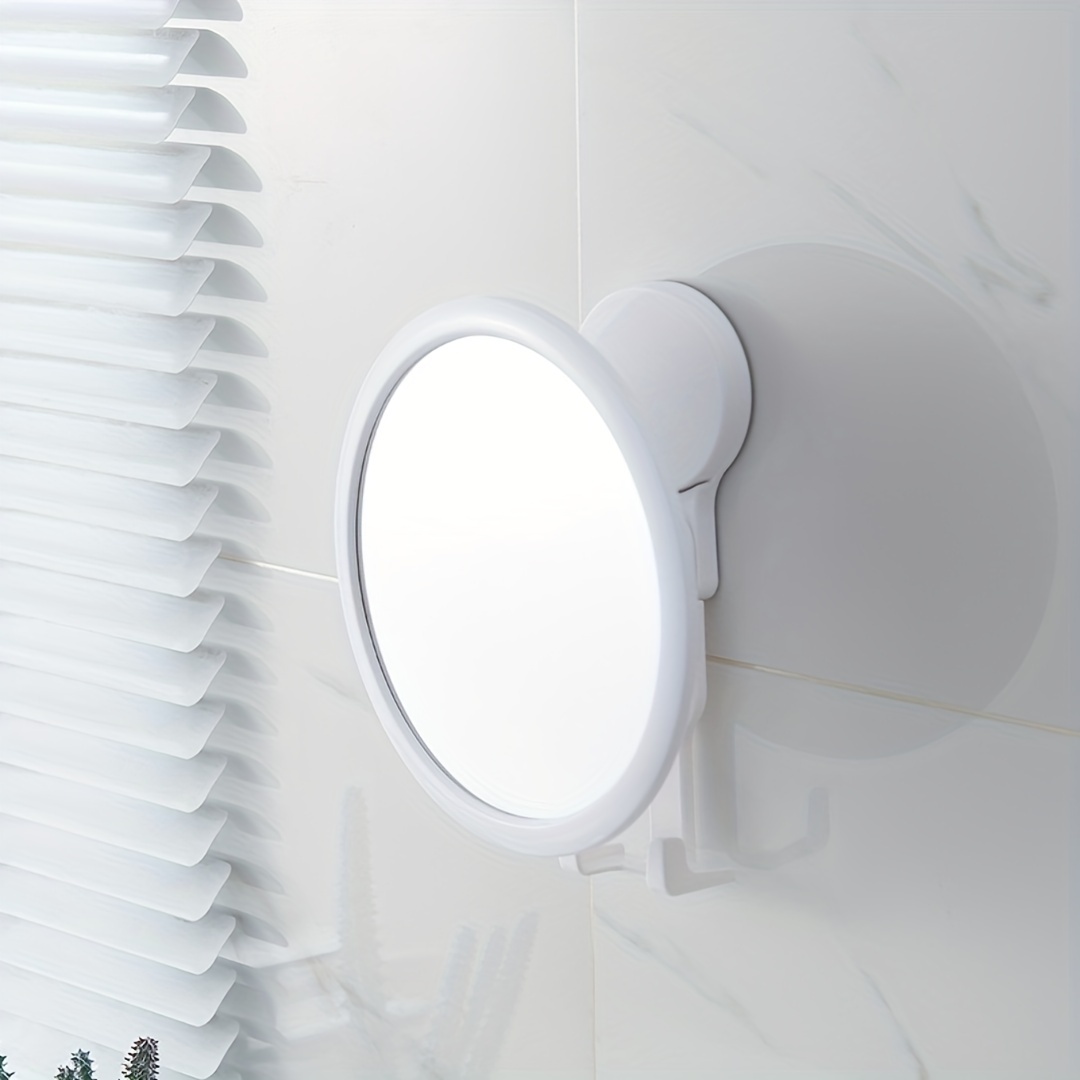 TEMU 설치가 쉬운 HD 욕실 화장대 거울, 수납 후크 포함 - 방수, 드릴 없는 흡착컵 벽걸이 디자인, 고화질 거울 이미지, 원형 화장대 거울, 욕실 벽걸이 거울