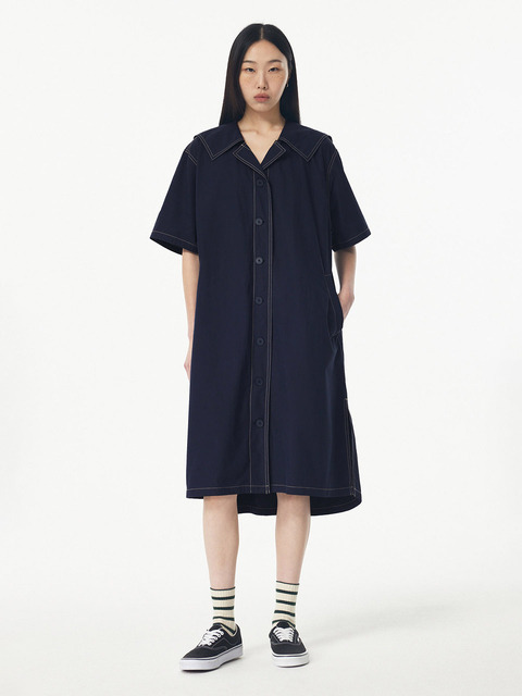 [스튜디오 톰보이] 배색 카라넥 반팔 원피스_다크 네이비 9176241983
