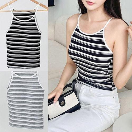 [셀러허브_여성트랜드패션]여성 2컬러 끈나시티 짱짱 스트라이프 나시티