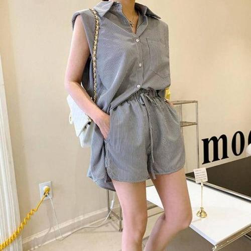 [셀러허브_여성트랜드패션]심플 세트 셔츠 HL] 팬츠 나시티 밴딩 스트라이프
