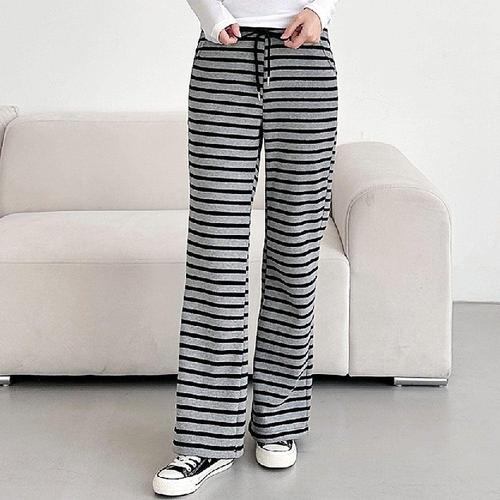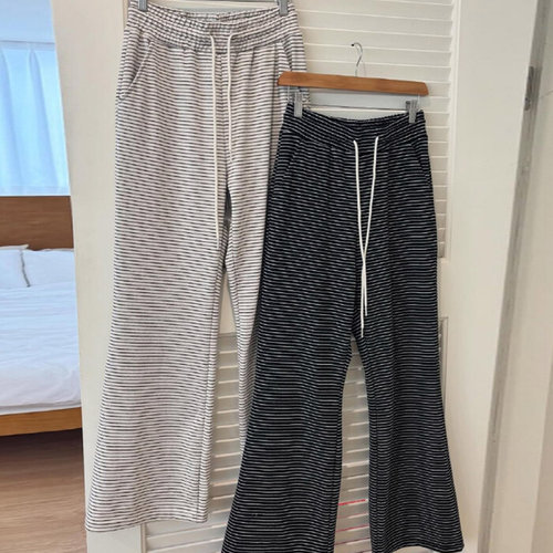 [옷자락] 여성 캐주얼 와이드 스트라이프 밴딩 트랙팬츠