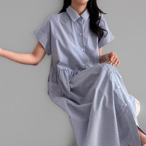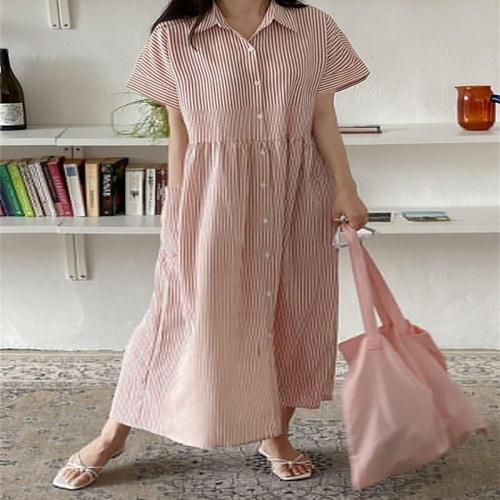 [오너클랜]인기상품 여성 2컬러 썸머 스트라이프패턴 셔츠형 반팔롱원피스 [WFJG30Q_251108]