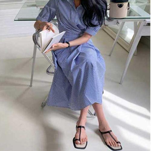 여성 원피스 편한 롱셔츠 뒷밴딩 스트라이프 오피스룩 여름