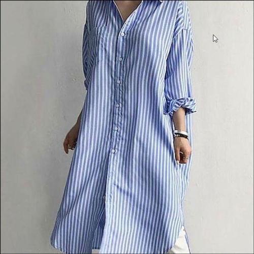 [셀러허브_여성트랜드패션]여자 루즈핏 스트라이프 롱 세련된 원피스 셔츠 남방