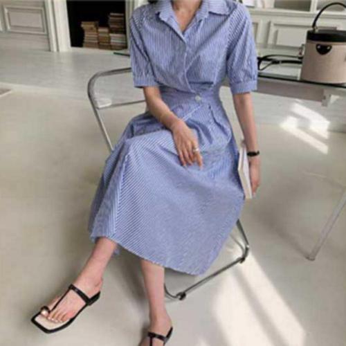 [신상오픈런]여성용 파랑 스트라이프 반팔 셔링 긴셔츠 원피스 (33434840)
