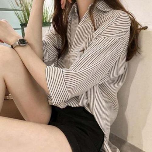 [XBI95376]쉬폰 LF26300 얇은 소매 블라우스 줄무늬 셔츠
