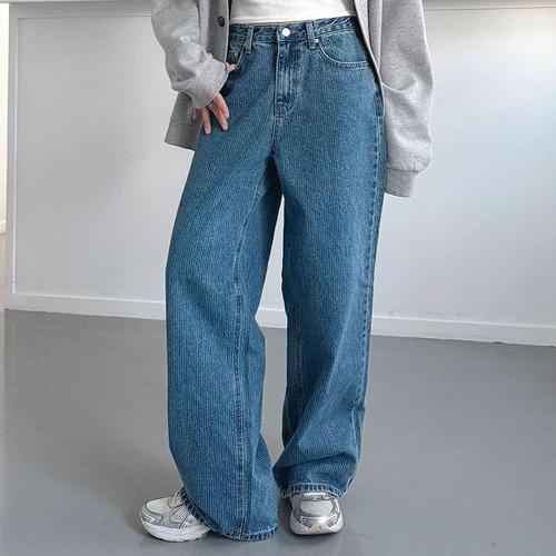 [옷자락] 여자 스트라이프 루즈 와이드핏 키큰녀 코튼 청바지
