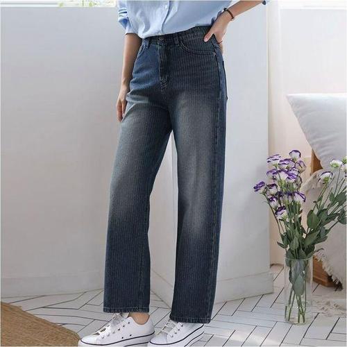 [에이치플러스몰]여성 청바지 세로 스트라이프 워싱 데님팬츠 일자핏 진