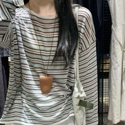신상 루즈핏 스트라이프 긴팔 여성 캐주얼티 WFL17EI