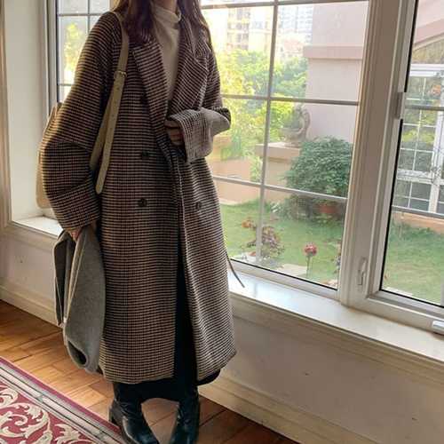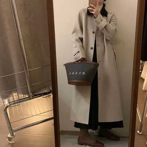 TIMEPURE 가을겨울 신상 울혼방 모직 코트 여성용 빅사이즈 트렌치코트 슬림핏 슬리밍 트렌디 엘레강스 보온성 오피스룩 롱기장 롱 자켓 루즈핏 아우터 오버니 코트