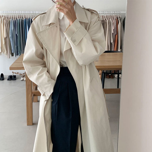 여성 하프 트렌치 허리스트랩 박시핏 코트