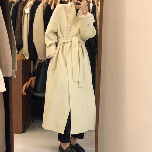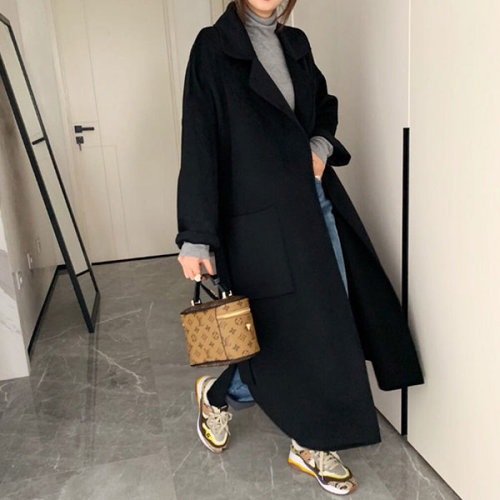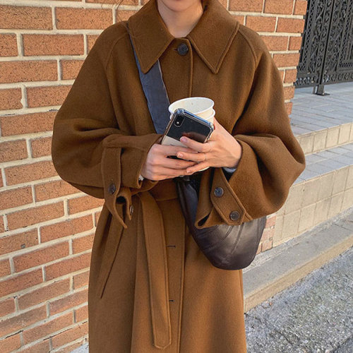 슈팅스타 / 부드러운 모직 빅카라 허리끈 스트랩 롱 코트