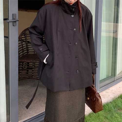여자 짧은기장 스트랩 봄가을 트렌치코트