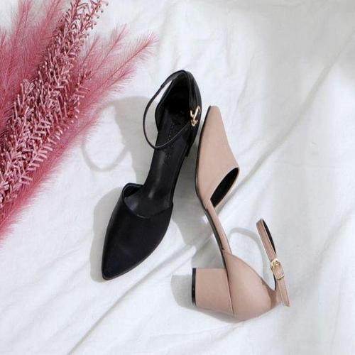 [셀러허브_여성트랜드패션]미들힐 뾰족코 통굽 발목 트임 스트랩 키높이