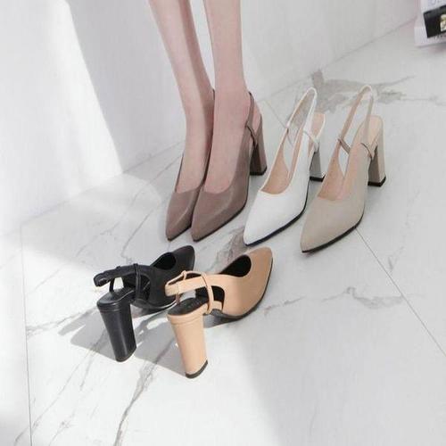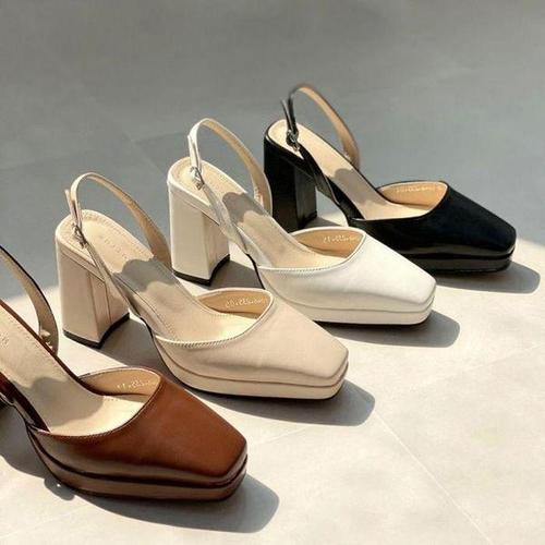 [셀러허브_여성트랜드패션]여자 통굽 유광 미들굽 슬링백힐 에나 키높이 스트랩