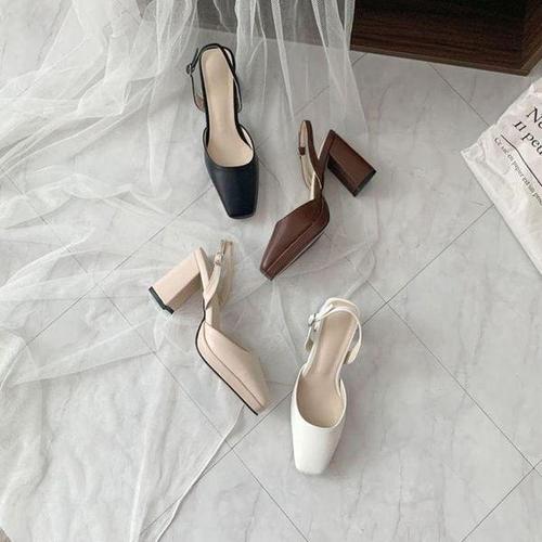 [셀러허브_여성트랜드패션]여자 심플 스트랩 통굽 가보시 키높이 각코 슬링백힐