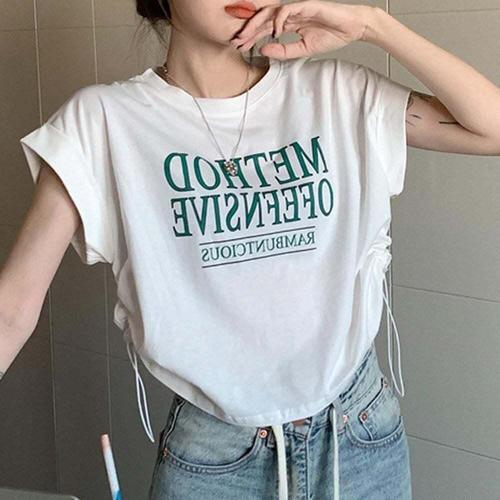 반팔 셔링 라운드 면 원피스 스트링 WFLRZJ0