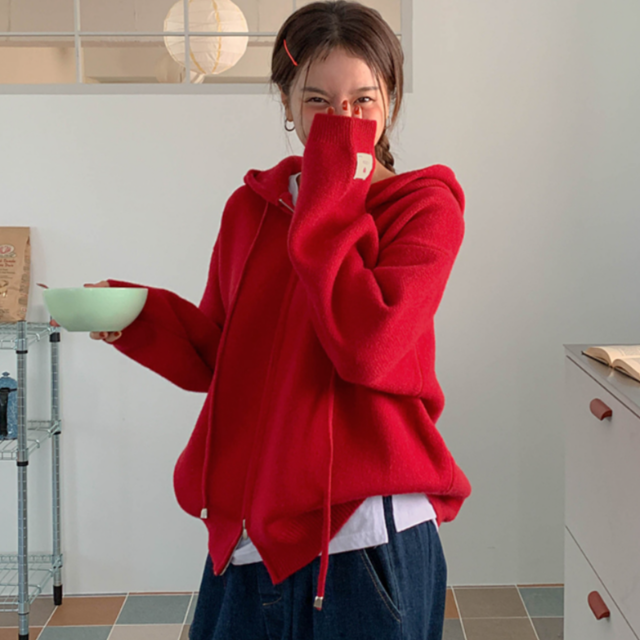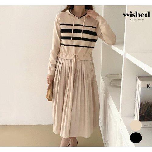 [위시드]후드 배색 라인 허리 스트링 니트 원피스 (WIBCOP003)