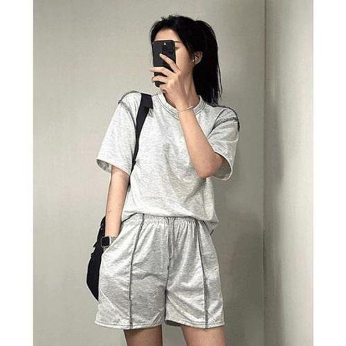 [셀러허브_여성트랜드패션]ONM 스티치 트레이닝 셋업 반팔 티 반바지 세트 SE