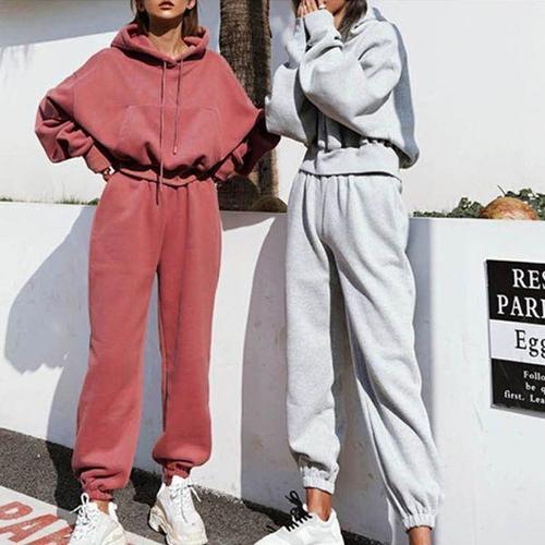 [에이치플러스몰]여성 스티치 기모 트레이닝 세트 크롭 후드 밴딩 팬츠