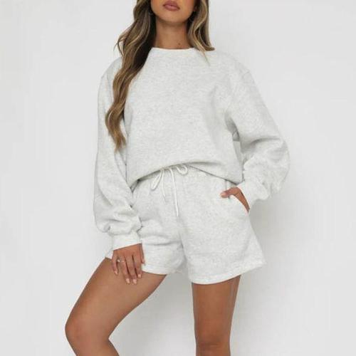 [에이치플러스몰]여성 스티치 기모 트레이닝 세트 맨투맨 반바지 셋업