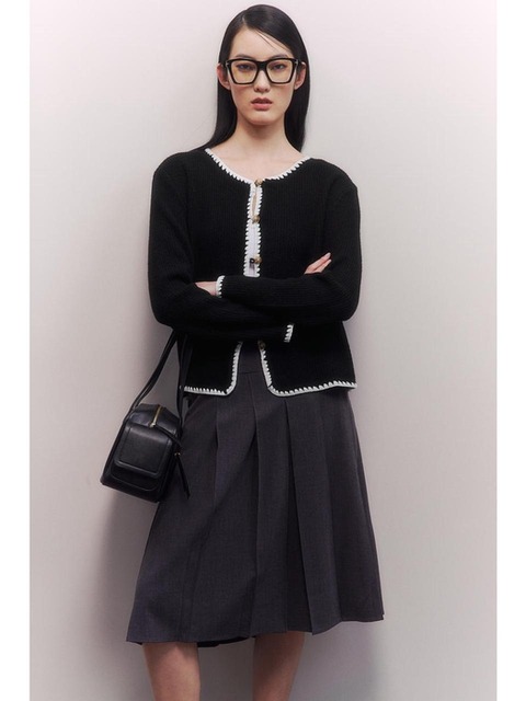 [에이치엔엠] 블랭킷 스티치 가디건 블랙 1275133003