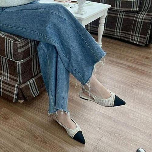 [셀러허브_여성트랜드패션]트위드 뾰족코 슬링백 여 배색 플랫 투톤 스틸레토힐