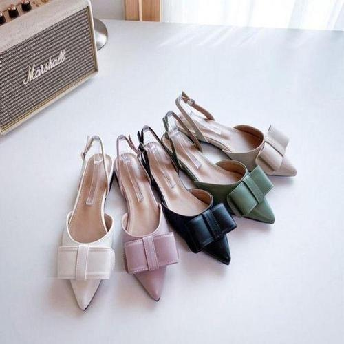 [셀러허브_여성트랜드패션]스틸레토힐 플랫슈 뾰족코 빅리본 슬링백 스트랩 장식