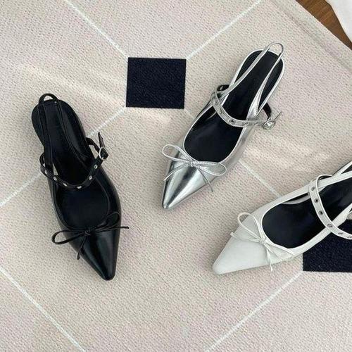 [셀러허브_여성트랜드패션]스틸레토힐 슬링백 뾰족코 리본 발등 플랫슈즈 스트랩