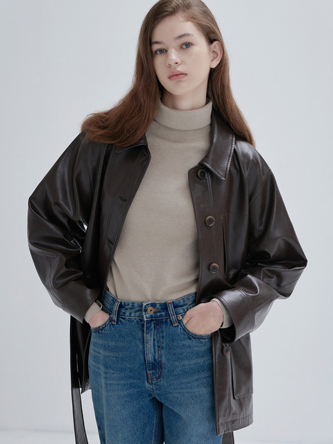 [닐바이피] 레더 사파리 자켓 브라운 블랙