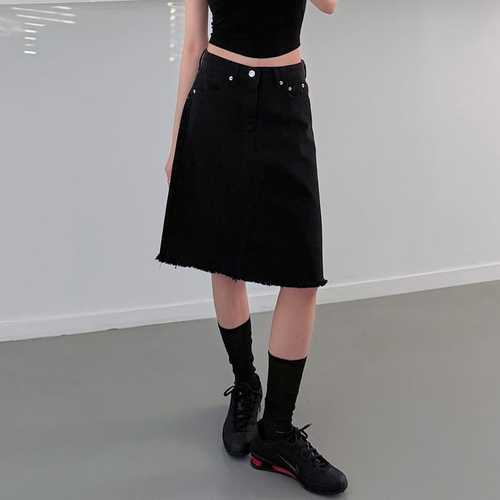여자 데님스커트 논스판 컷오프 중간 진 스커트