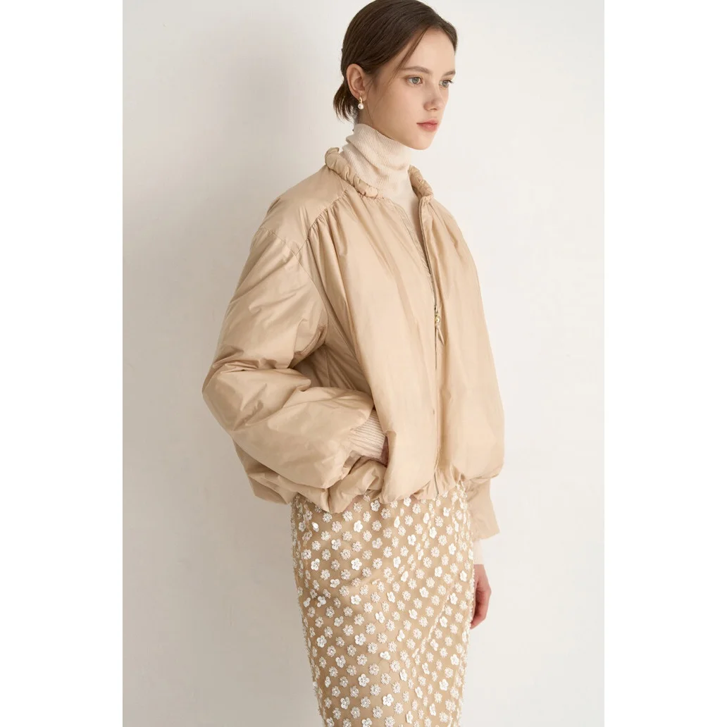 한국 스타일 숏 구스 다운 재킷 라운드 넥 플리츠 드로스트링 출퇴근용 루즈 두꺼운 내구성 여성 겨울 코트