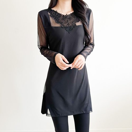 까르죠아 여리여리 망사 롱 블라우스 엄마옷 중년 미시 마담복 빅사이즈 여성의류