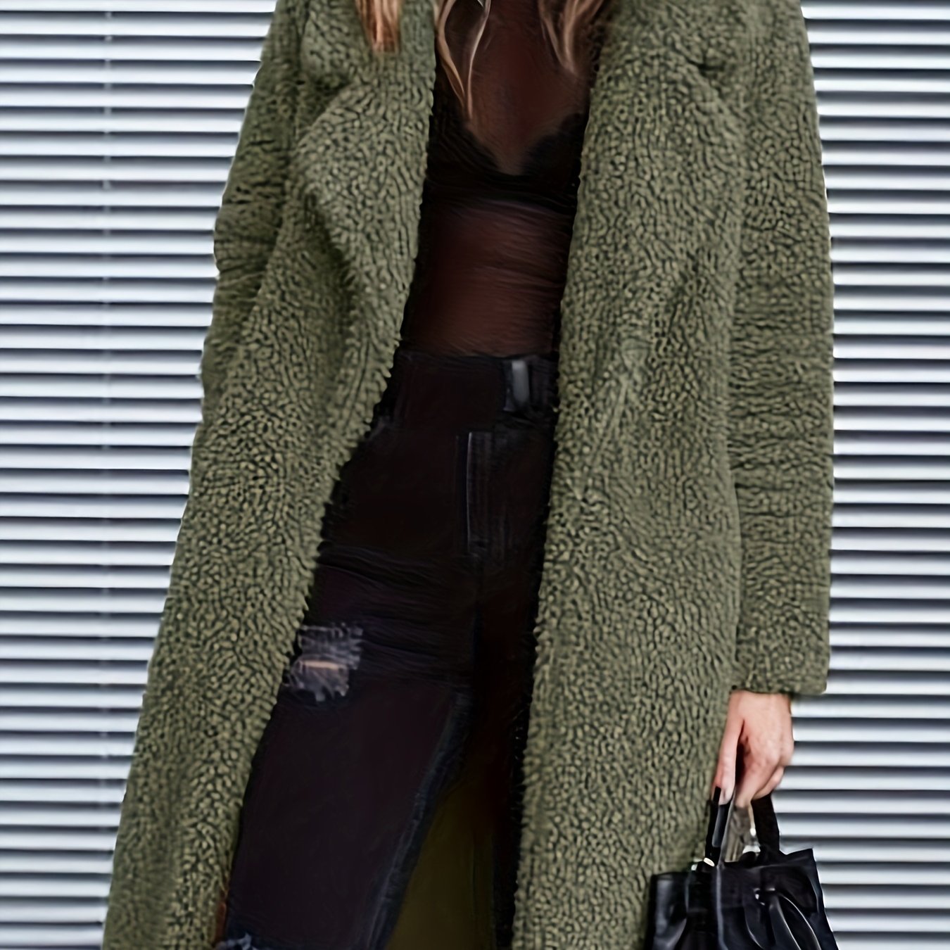 TEMU 여성용 플랩 칼라 롱 가디건 코트, 폭신폭신한 따뜻한 겨울 트렌치 코트