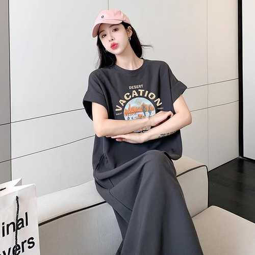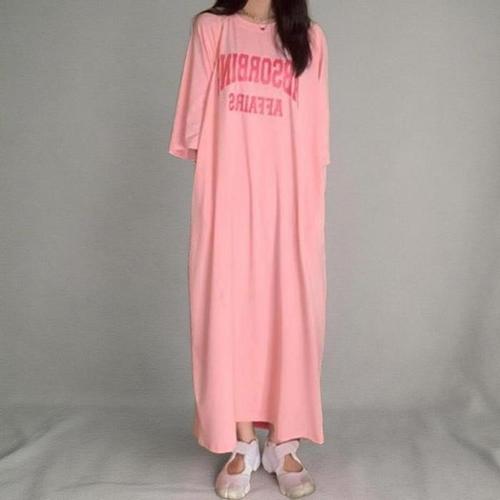 [신상오픈런]여성 스판 루즈핏 레터링 트임 7부 힙무드 롱 원피스 (38541365)